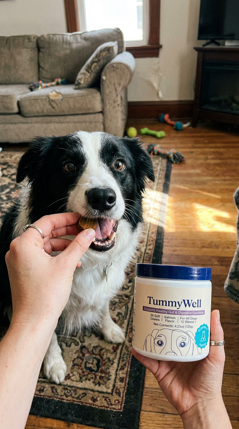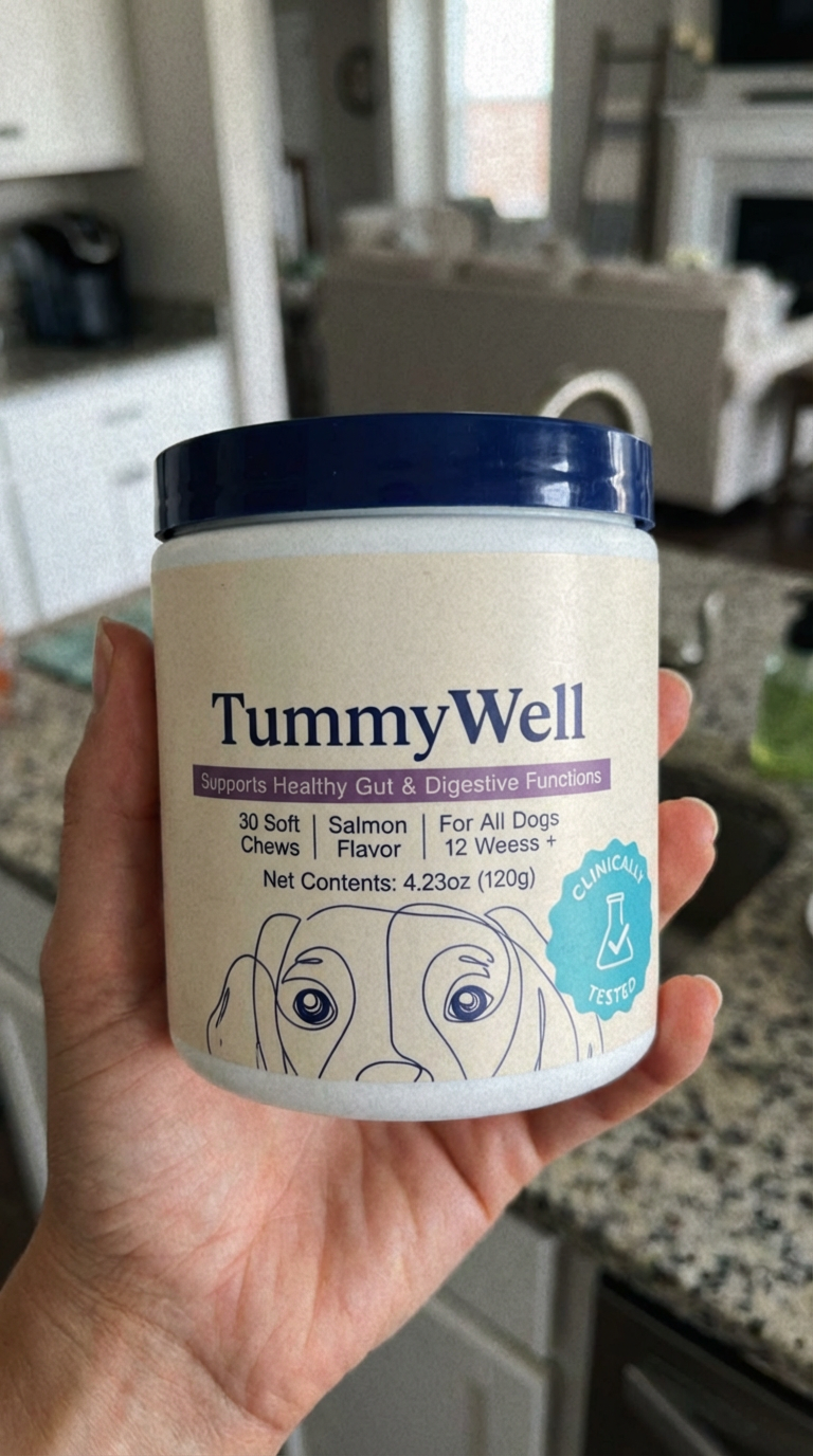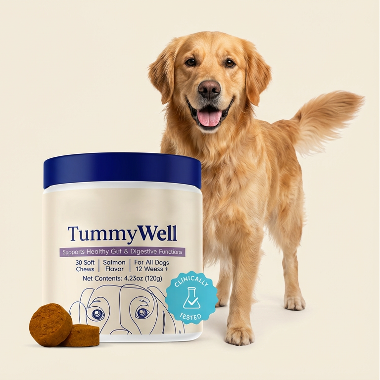 Does your dog struggle with diarrhea, a sensitive stomach, or soft stools? TummyWell contains 7 good bacteria that rebalance your dog's gut. Just give one chew daily and watch the difference.